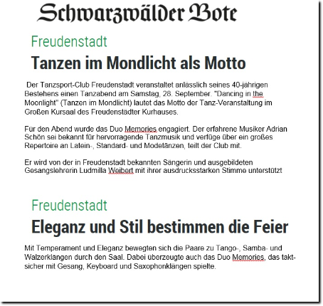 Duo Calw; Duo Stuttgart, Duo Freudenstadt, Duo Pforzheim, Kurhaus Freudensatdt, Tanzschule, Hochzeit, Partymusik; Vernissage; Geburtstag; Galatanz; Silvestergala; Abibal; Tanzschule Burger Schäfer Stuttgart,
